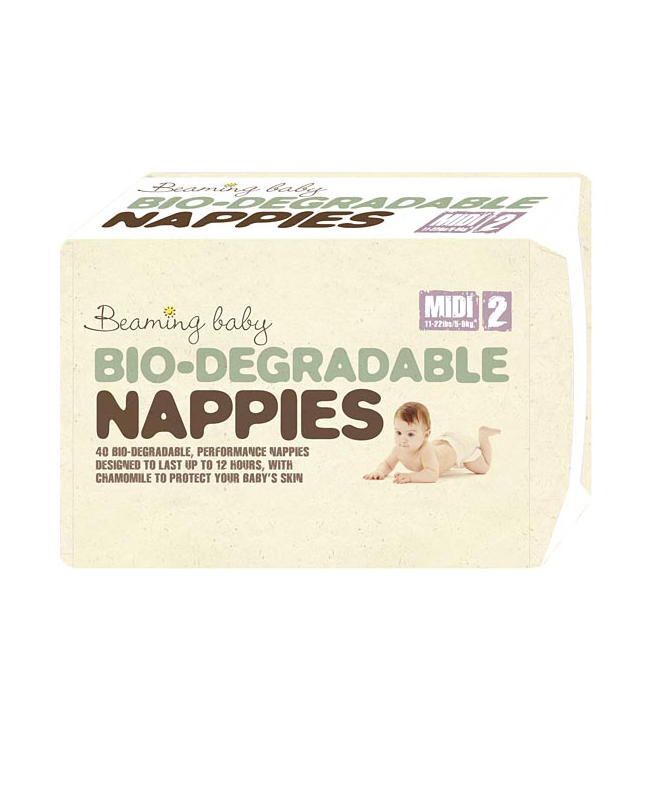 Beaming Baby, Bio Degradeable Nappies Midi Size 2 (5-8kgs) 40 pack